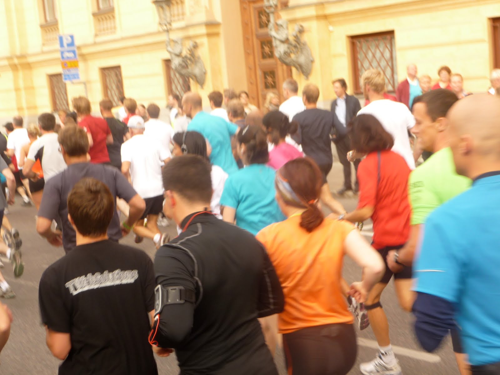 I wasn't so thrilled about the 4 pm Saturday start time. But I had a great cheering squad, as my parents were still in town (to date they have been at every 1/2 and full marathon I've raced in, traveling to Portland, San Diego and Boston and now Stockholm). Myrna stayed occupied by watching the runners and playing with a balloon.